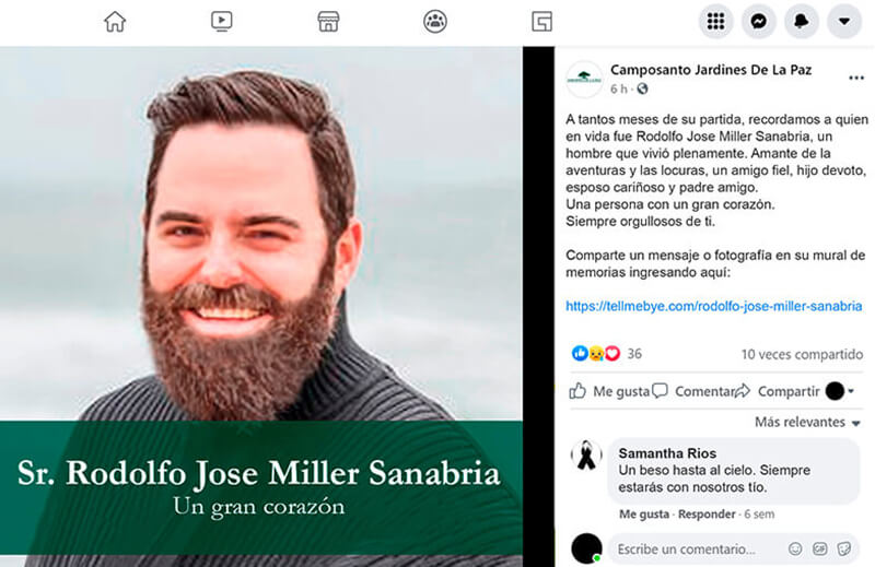 - Obituario habilitado para compartir en Facebook